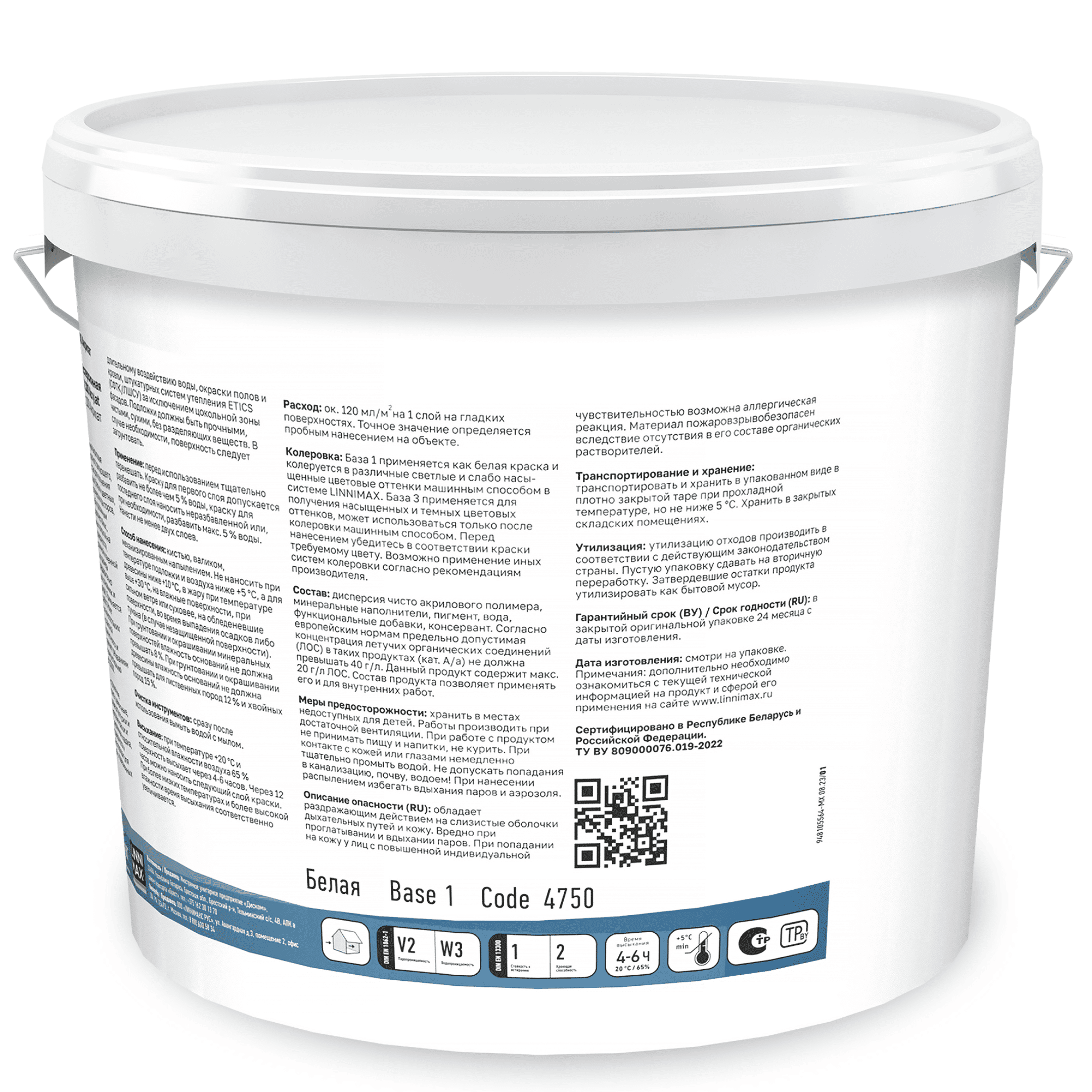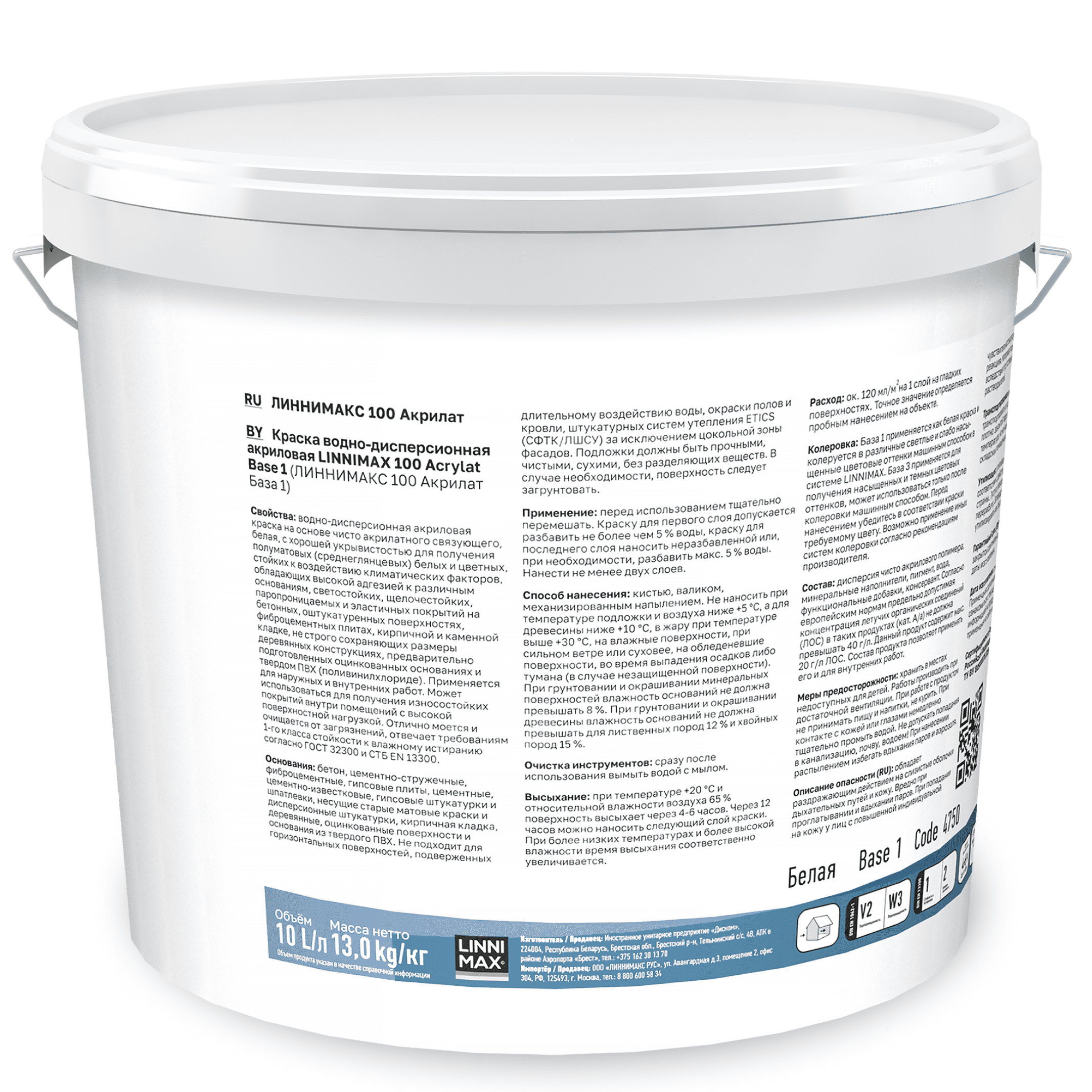 База 1 (белая) для системы колеровки LINNIMAX: 2,5 л, 10 л